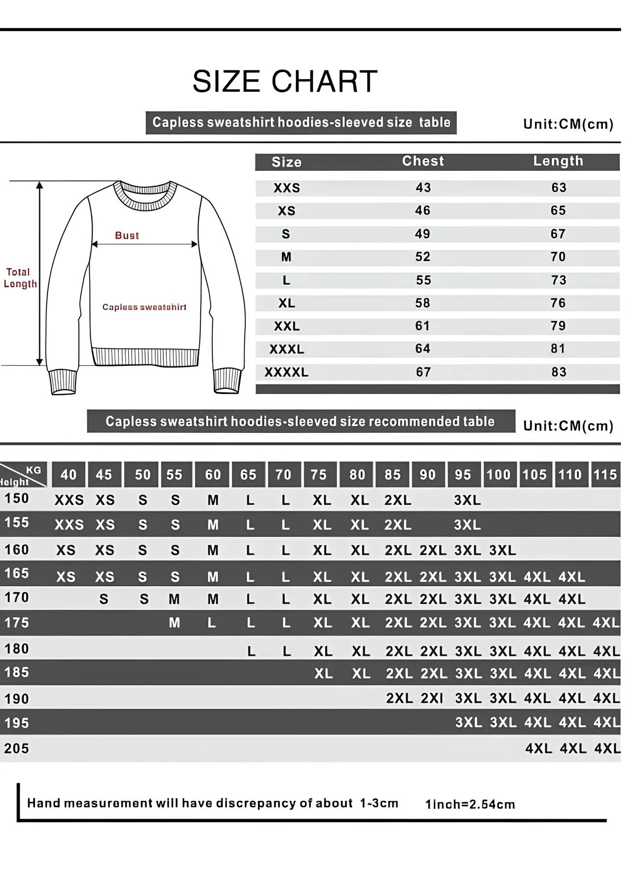 Sizes: “XS”, “S”, “M”, “L”, “XL”, “2XL”, “3XL”, “4XL”
